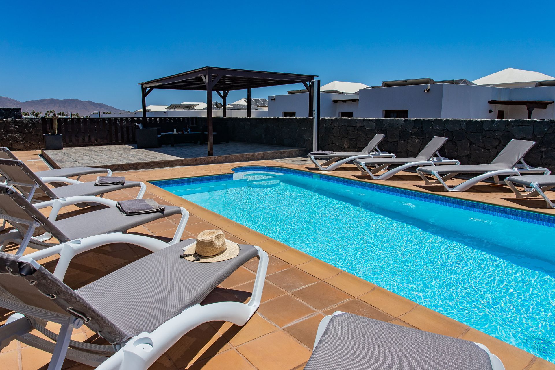 Diese fabelhafte Villa in Playa Blanca befindet sich in der 5 * Wohnanlage, ebenso wie die Residencial Vista Lobos. An erhöhter Lage bietet die Villa einen Panoramablick auf das Meer, die Isla de Los Lobos und die Isla de Fuerteventura. Die beeindruckende Villa liegt nur wenige Gehminuten vom Stadtzentrum und den Stränden entfernt und bietet so eine Unterkunft ohne Auto