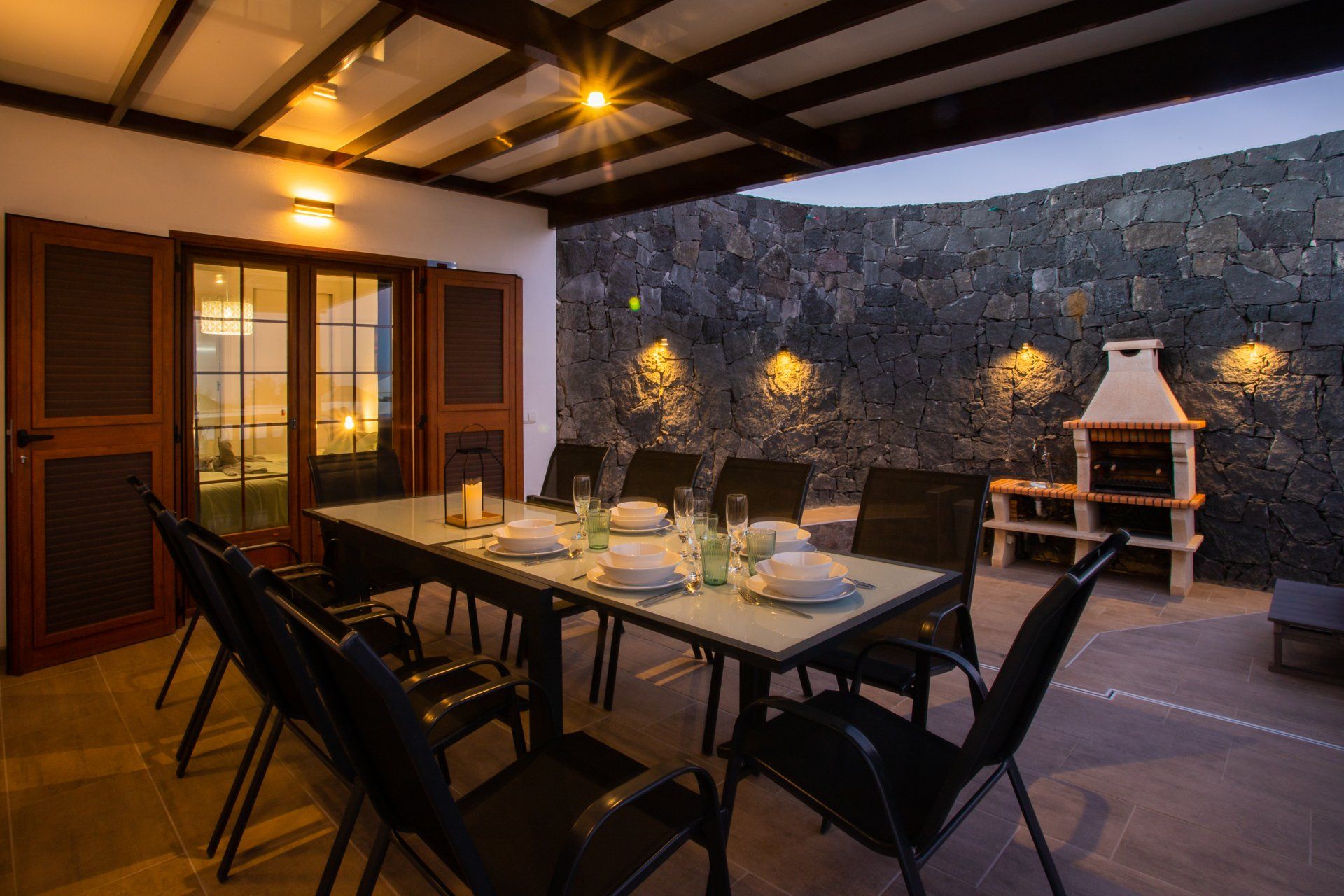 The huge living room (70m²), a fantastic area to relax has a flat screen LCD television with IPTV broadcasting system (offers channels such as Sky Sport 1, 2, 3 and 4, BT Sport 1 and 2, ITV 1, 2, 3 and 4, BBC 1, 2, 3 and 4 among others), Pool and Football table and WIFI connection. Next to the living area is the dining room where you can enjoy some fantastic meals.